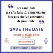 L’U2P invite les candidats à l’élection présidentielle à défendre leur programme et à réagir aux propositions de l’U2P pour le prochain quinquennat. Ils dialogueront avec les membres du Conseil National de l’U2P en direct de 9h30 à 15h.