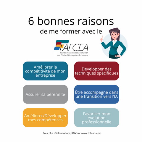 Artisan, votre formation professionnelle continue de chef d'entreprise est une formidable opportunité de développer votre activité avec le FAFCEA